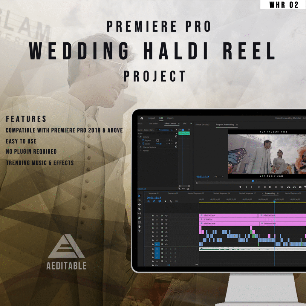 This all-encompassing template for Premiere Pro is designed to weave together every precious moment —from the joyful laughter and emotional tears to the quiet, romantic glances. Create a stunning, feature-length wedding film that tells a complete and candid story, preserving the full spectrum of human emotions in a cinematic keepsake.